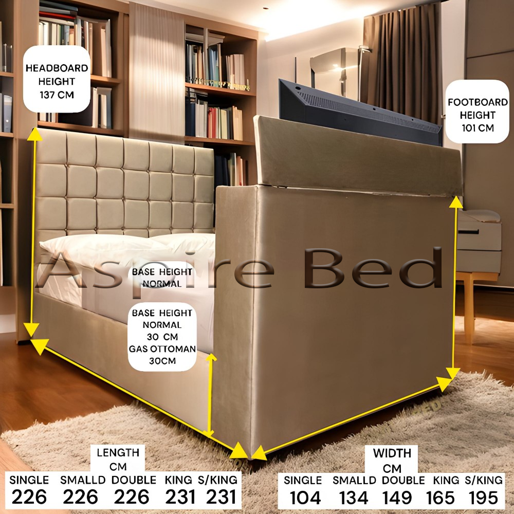 2025 Milan Style TV Bed Frame with Optional Ottoman Storage