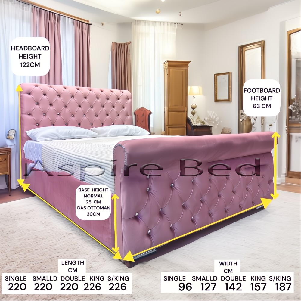 2025 Luton Bed With Studs Upholstered Designer Bed Frame With Optional Ottoman Storage