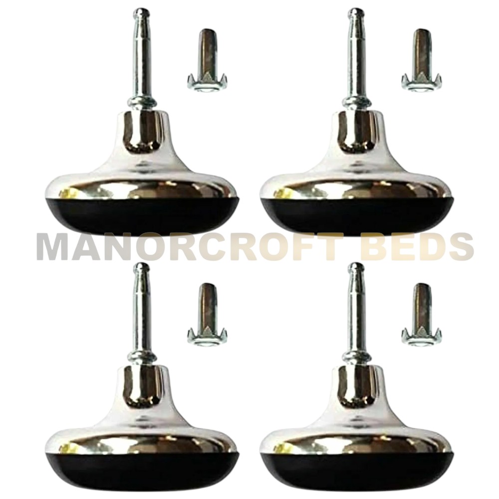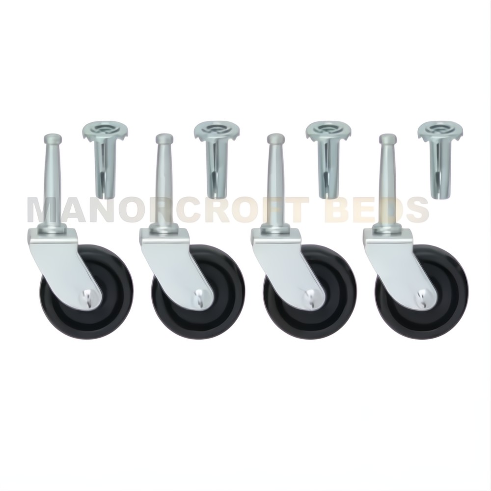 Manufactured from nylon and stainless steel material for a durable use. Prevents erosion of the metal and provides durability. Fits 99% of divan bases manufactured in the UK. Each pack contains 4 x castors and 4 x inserts